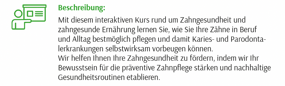 Gesunde Zähne sind wichtig für unser Wohlbefinden und sie fördern die Chancen im Beruf. An den berufsbildenden Schulen und in den Unternehmen wird jedoch kaum darüber gesprochen, geschweige denn aufgeklärt und beraten. Das will ich ändern.